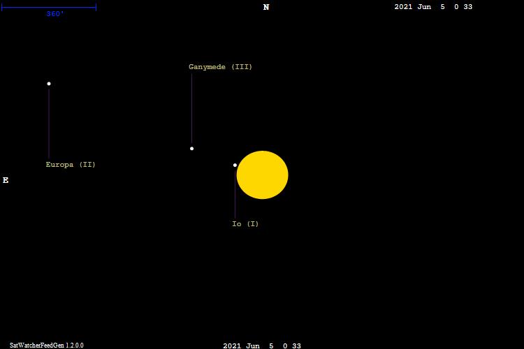 | Jupiter | -2.3 | Ganymede (III) | 4.8 | Io (I) | 5.2 | 1506sec | 4.8 |
