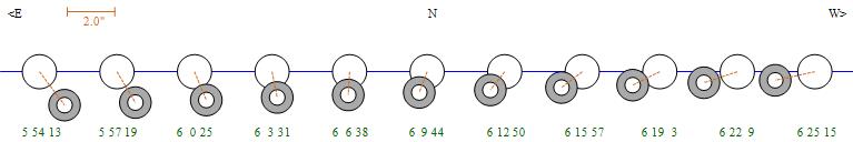 | Penumbral Start | Partial Start | Total Start | Mid-Time | Total End | Partial End | Penumbral End |