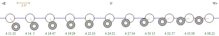 | Penumbral Start | Partial Start | Total Start | Mid-Time | Total End | Partial End | Penumbral End |
