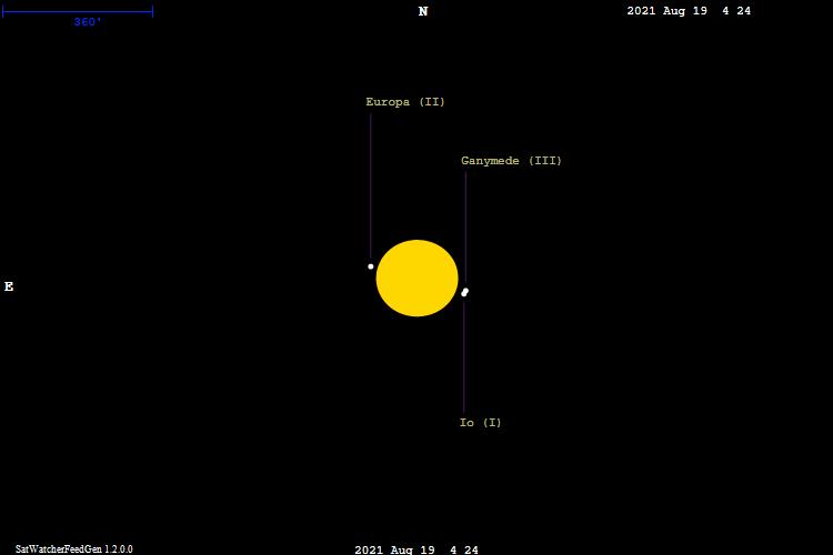 | Jupiter | -2.7 | Io (I) | 4.8 | Ganymede (III) | 4.4 | 1132sec | 0.1 |
