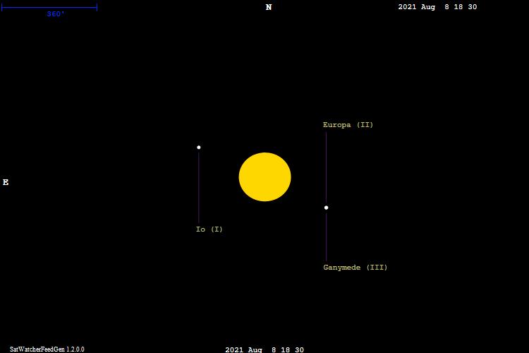 | Jupiter | -2.7 | Ganymede (III) | 4.4 | Europa (II) | 5.1 | 3120sec | 0.5 |