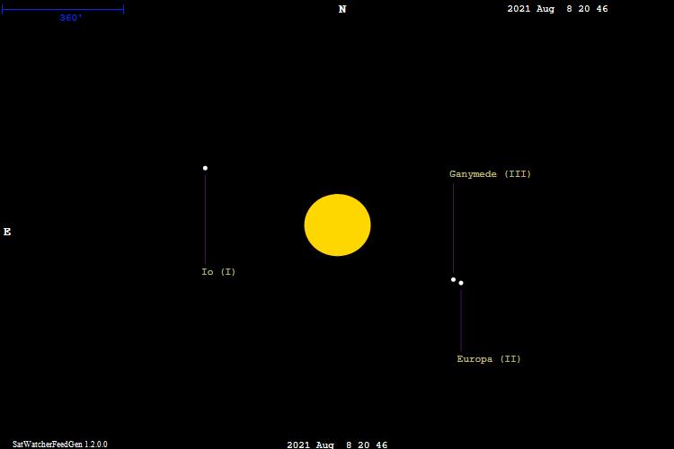 | Jupiter | -2.7 | Ganymede (III) | 4.4 | Europa (II) | 5.1 | 3759sec | 0.4 |
